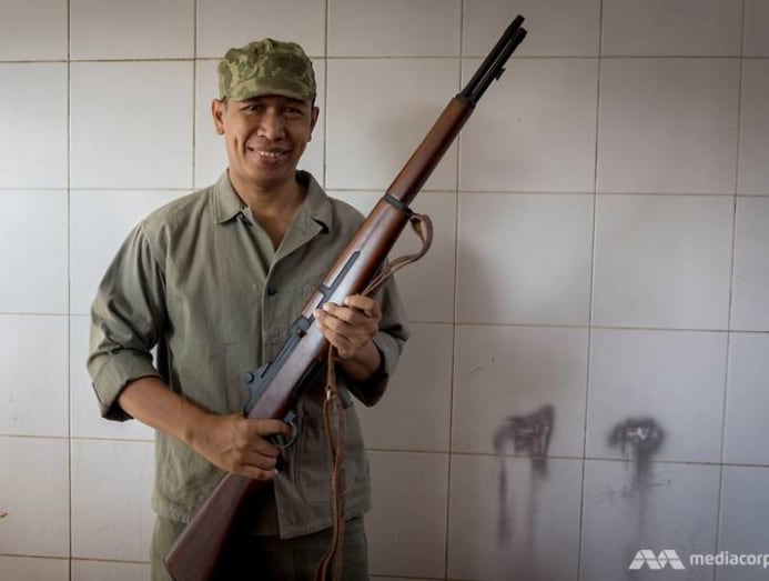 For the Aug 1 re-enactment at the museum, Rishananto brought two replica rifles, one fabricated to await like those used past the Dutch before the Japanese invasion and the other used during World War Two.